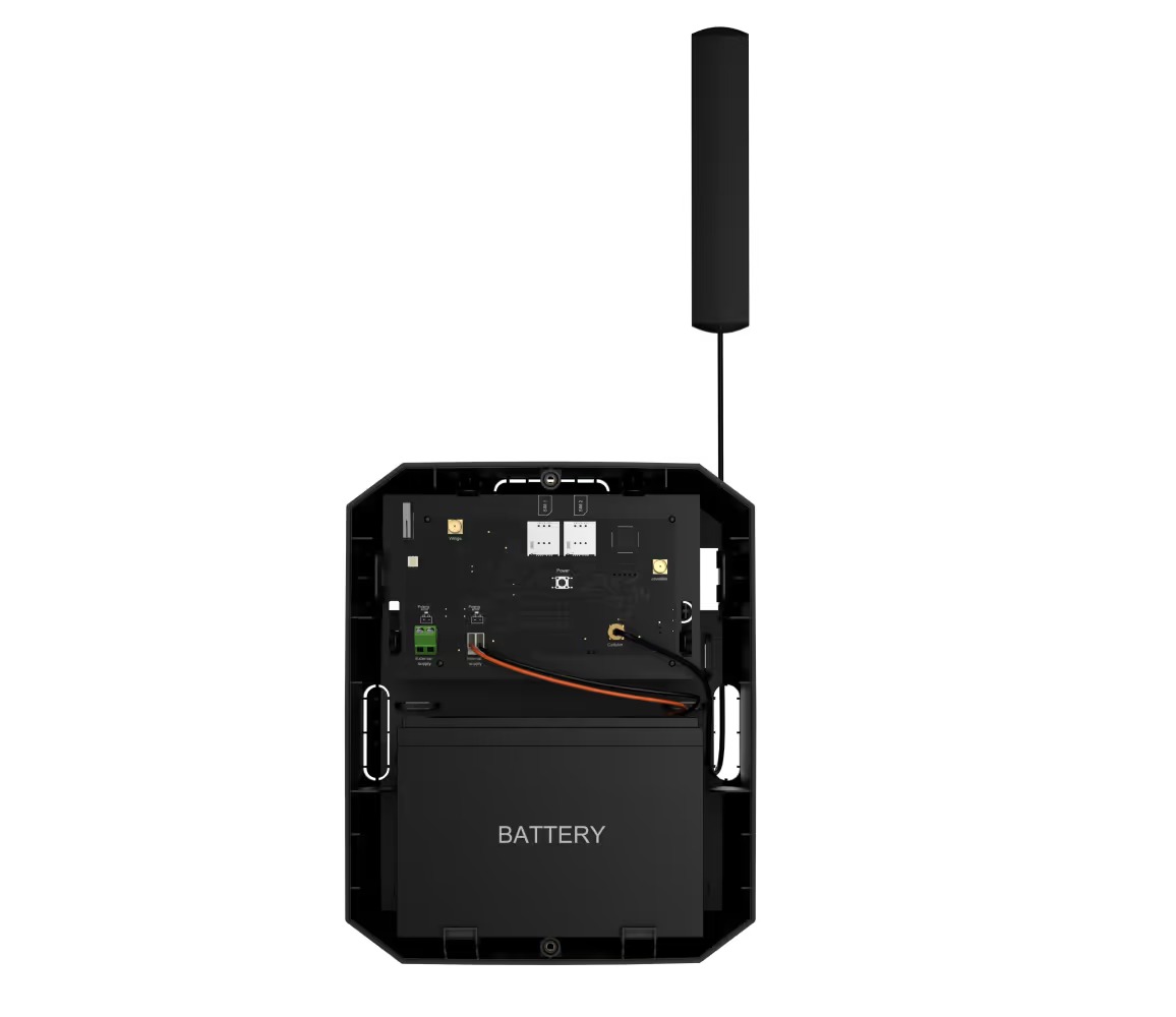 Als de integriteit van de kabel van ExternalAntenna wordt aangetast, stuur het systeem het beveiligingsbedrijf en de gebruikers hiervan een melding. Ook als het signaal slechts verzwakt en niet volledig verdwijnt, wordt er nog steeds een melding verzonden. Standaard schakelt de hub automatisch over naar de ingebouwde antennes en stelt het de gebruikers en het beveiligingsbedrijf op de hoogte van het probleem.