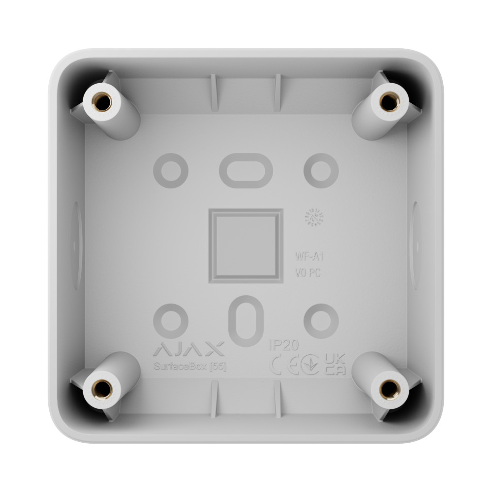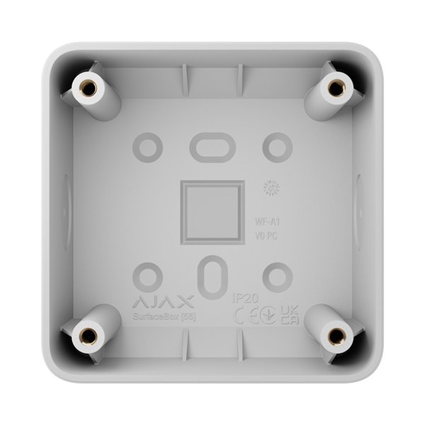 Wil je een Ajax LightSwitch of Ajax Outlet netjes plaatsen, maar is inbouwen geen optie? De Ajax Surfacebox [55] is de geweldige en slimme oplossing voor een strakke opbouwinstallatie. Je monteert deze montagedoos direct op vrijwel elk oppervlak, zodat je snel geniet van het comfort en de uitstraling van Ajax — zonder hak- en breekwerk. Direct een nette afwerking, betrouwbaar bevestigd en ontworpen om perfect aan te sluiten op de vorm van je schakelaar of stopcontact.
