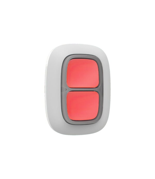 Ajax DoubleButton is een draadloos overvalknop. Om een alarm te activeren moeten beide knoppen tegelijkertijd worden ingedrukt. Knop is niet buigbaar en wordt gescheiden door een plastic verdeler. De kans op een vals alarm wordt daardoor geëlimineerd indien de DoubleButton in een zak of tas wordt gedragen.
